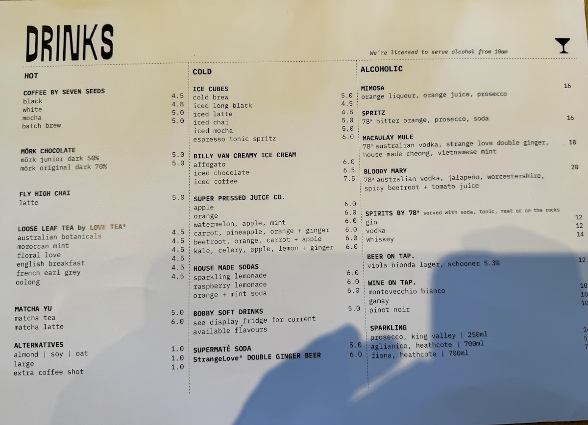 - Sourdough or Fruit Toast - a warm start with butter, jam, or peanut butter (A$9.00).